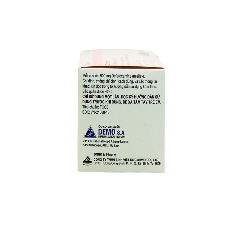 - Deferoxamine mesylate với hàm lượng 500mg.