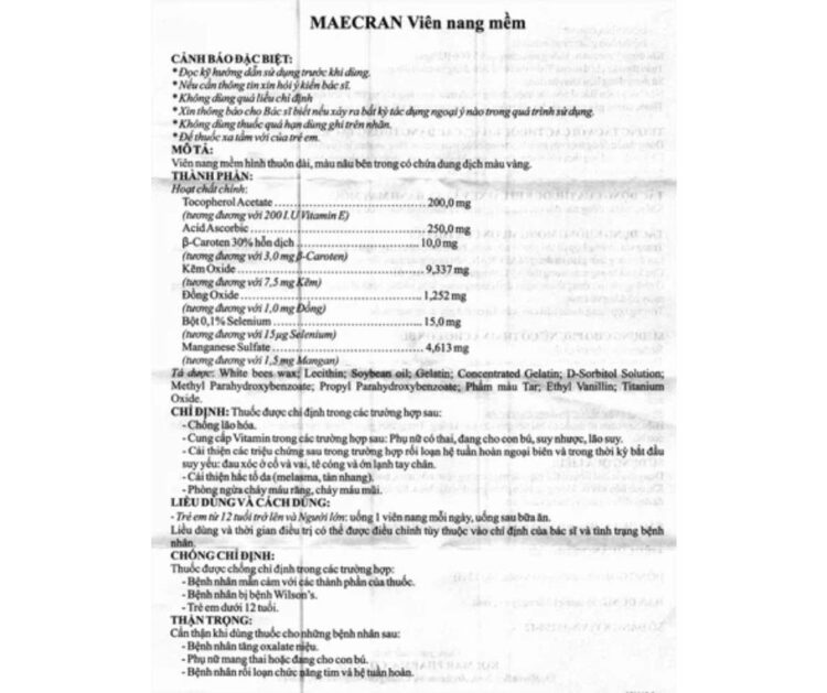 - Trong vài trường hợp bệnh nhân sử dụng Maecran có thể bị nôn mửa, buồn nôn, tiêu chảy, ngứa, khó chịu dạ dày, tiêu chảy hoặc táo bón, ban đỏ… khi đó nên ngưng sử dụng thuốc Maecran và hỏi ý kiến bác sĩ hoặc dược sĩ.